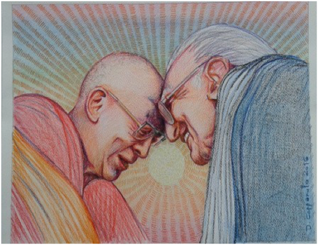 Lotto n. 33 - disegno matita a olio/tempera “Pannella e Dalai Lama” di Daniella Cepparulo - cm. 33x48